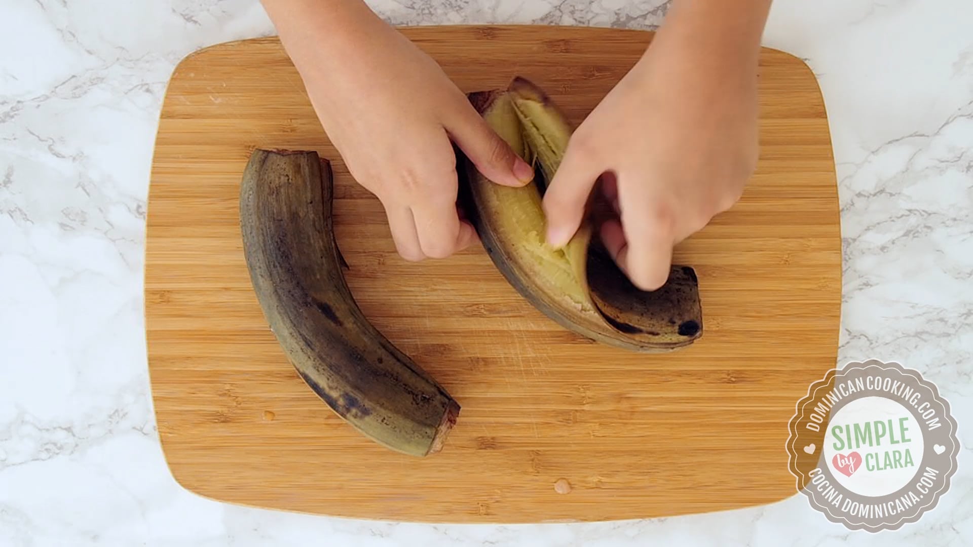 you can peel if you like. My method is quicker, and the bananas have a prettier color once boiled. - If you want to peel them, start by cutting both ends off, then cut through the sides,