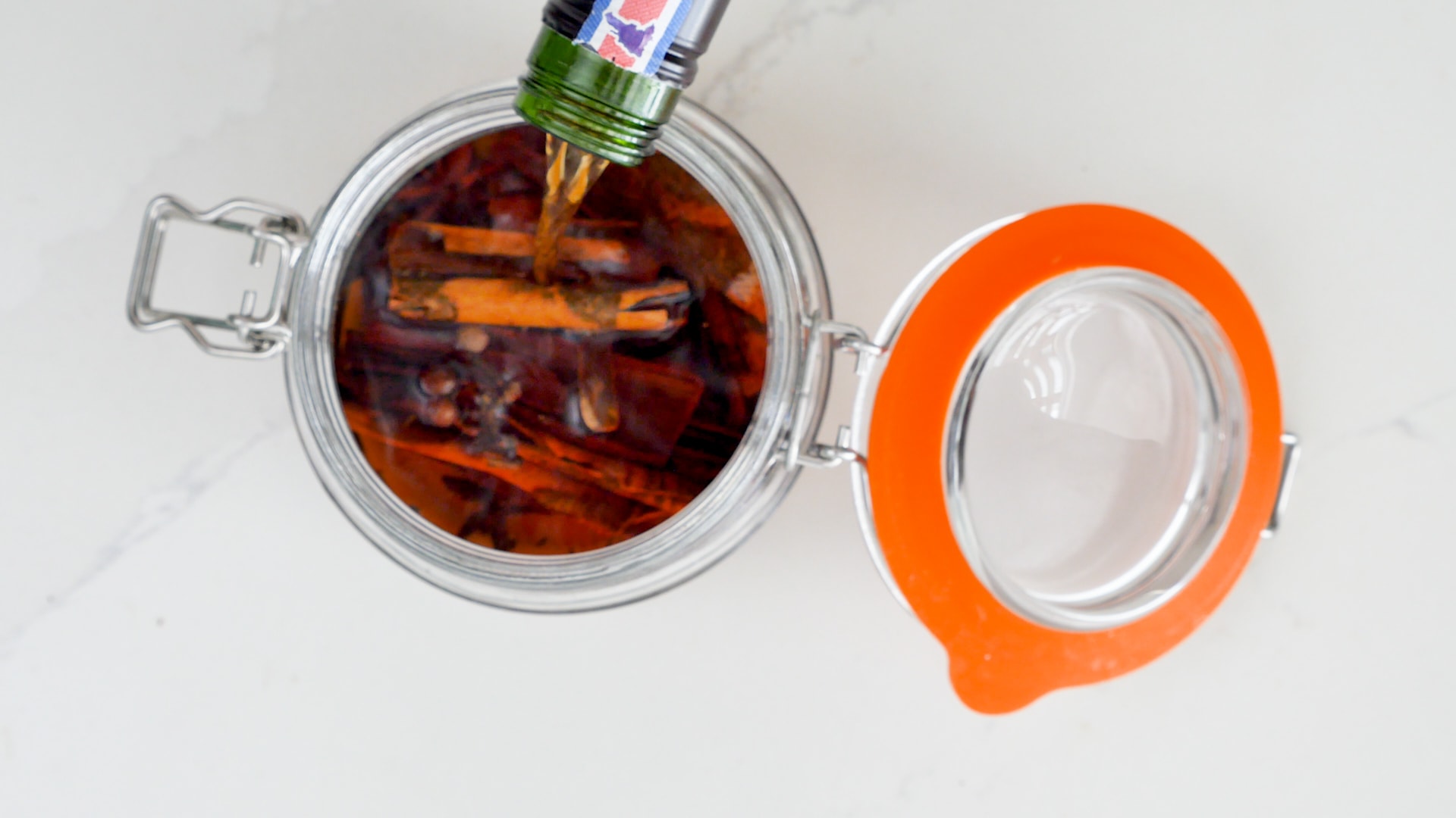 - In a clean jar or bottle, place cinnamon, cloves, allspice, and star anise. Pour in the rum. Cover with a tight-fitting lid and let it rest for a week.